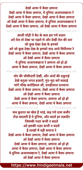 Lyrics of Dekho Aaya Ye Kaisa Zamana - देखो आया ये कैसा ज़माना