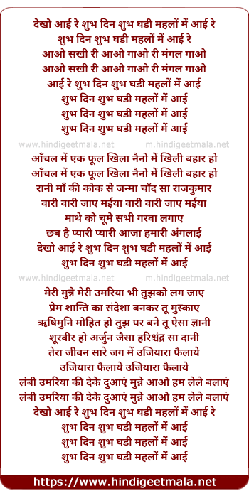 dekho aayi re shubh din shubh ghadi mehalo mein aayi re