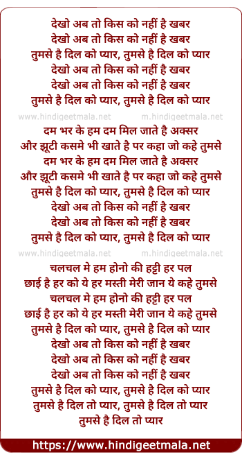 Lyrics of Dekho Ab To Kisi Ko Nahi Hai Khabar - देखो अब तो किस को नहीं है खबर