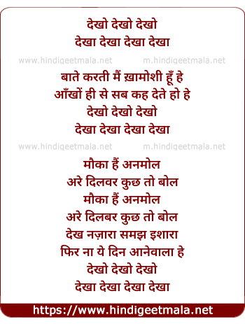 Lyrics of Dekho Dekho Dekho - देखो देखो देखो