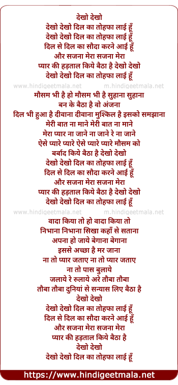 Lyrics of Dekho Dekho Dil Ka Tohfa Layi Hu - देखो देखो दिल का तोहफा लाई हूँ