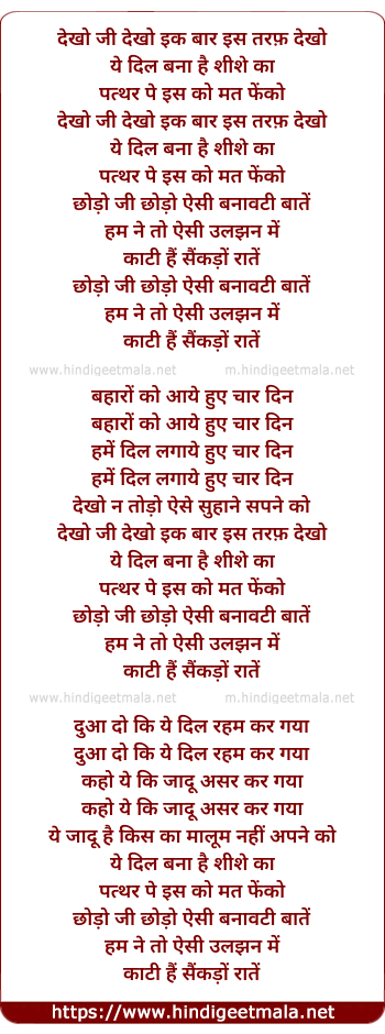 Dekho Ji Dekho Ek Baar Is Taraf Dekho - देखो जी देखो इक बार इस तरफ़ देखो