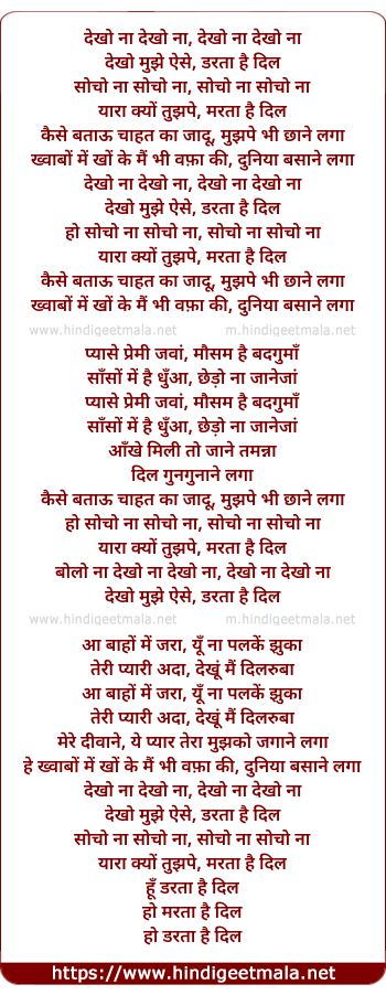 Lyrics of Dekho Naa Dekho Na - देखो ना देखो ना