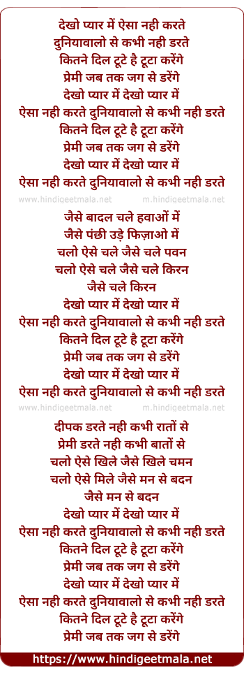 Lyrics of Dekho Pyaar Mein Aisa Nahi Karate - देखो प्यार में ऐसा नही करते