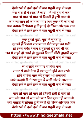 Lyrics of Dekho Raste Mein, Haste Haste Mein - देखो रस्ते में हँसते हँसते में