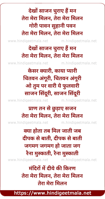 Lyrics of Dekho Sajan Churaye Hai Mann Tera Mera Milan - देखों साजन चुराए हैं मन तेरा मेरा मिलन
