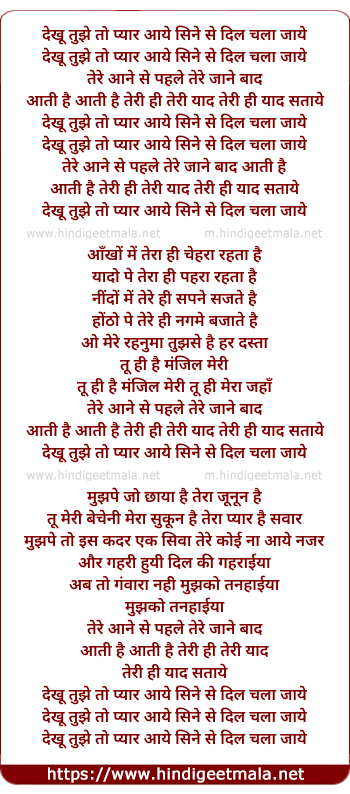 Lyrics of Dekhu Tujhe To Pyar Aaye - देखू तुझे तो प्यार आये