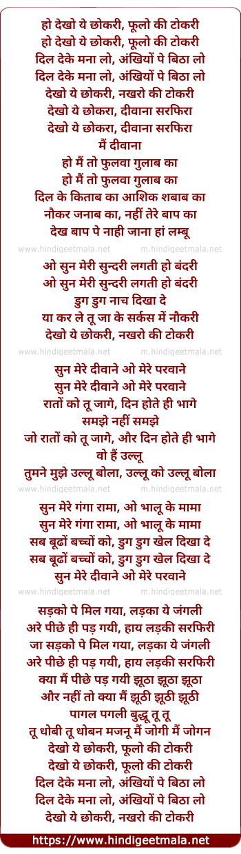 Lyrics of Dekho Yeh Chokri - हो देखो ये छोकरी, फूलो की टोकरी