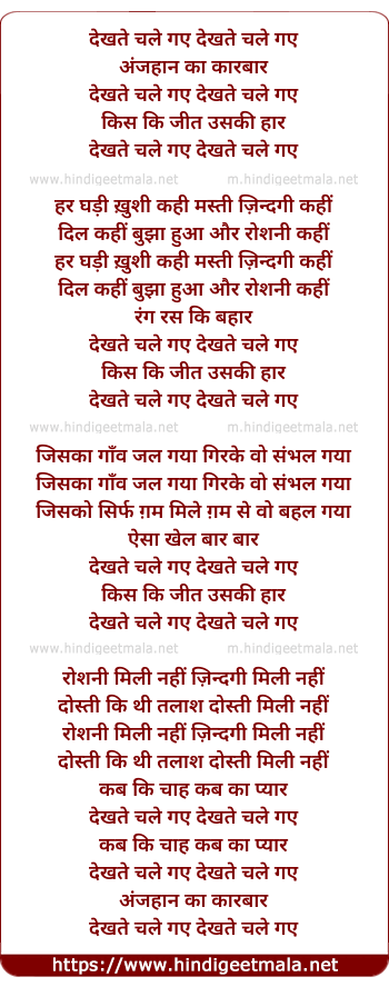 Poetic Translation - Lyrics of Dekhte Chale Gaye - देखते चले गए