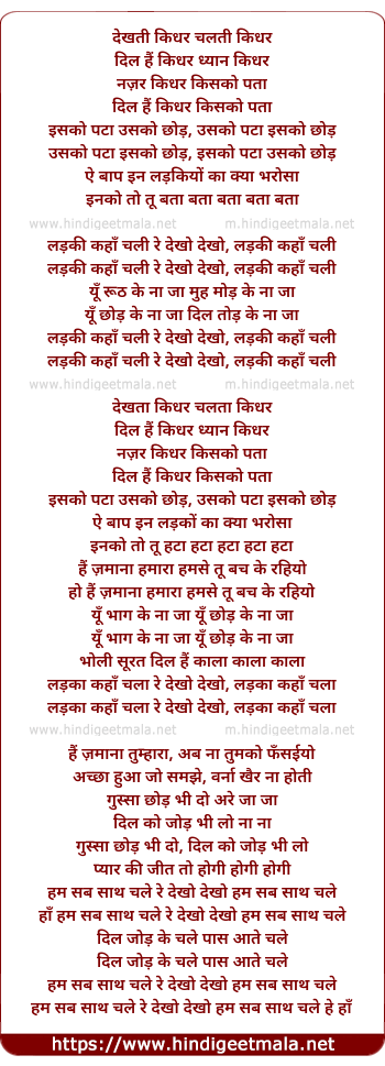 Lyrics of Dekhti Kidhar Chalati Kidhar - देखती किधर चलती किधर