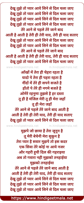 Lyrics of Dekhu Tujhe To Pyar Aaye (Remix) - देखू तुझे तो प्यार आये सिने से दिल चला जाए