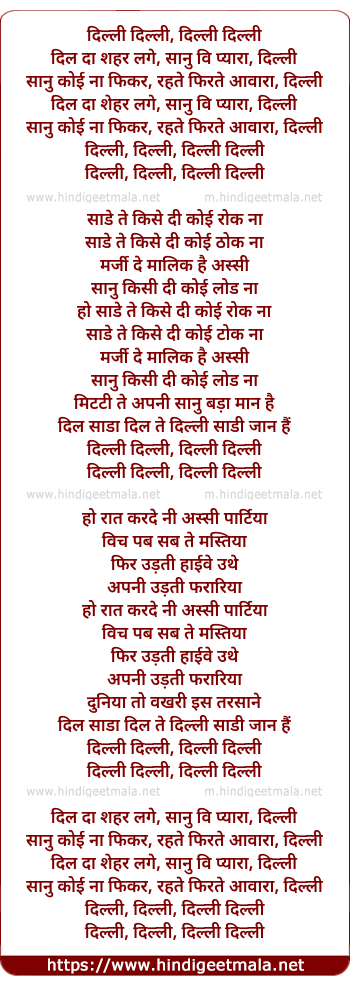 Lyrics of Delhi Delhi - दिल्ली दिल्ली