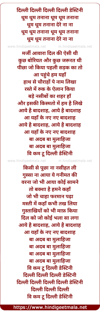 Lyrics of Delhi Destiny Spice Mix - दिल्ली दिल्ली दिल्ली दिल्ली डेस्टिनी