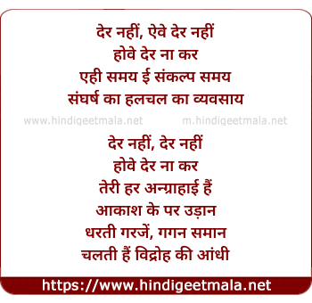 Lyrics of Der Nahi Der Nahi Hove Der Na Kar - देर नहीं देर नहीं होवे देर ना कर