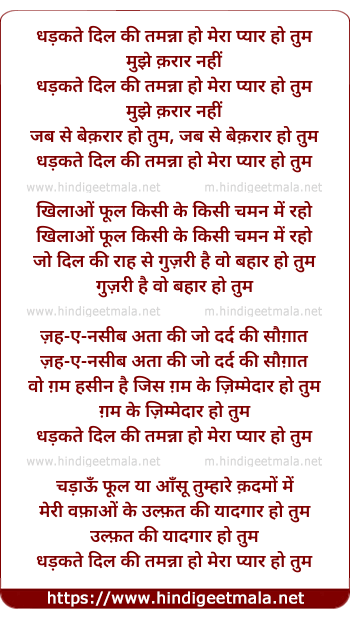 Lyrics of Dhadakte Dil Ki Tamanna - धड़कते दिल की तमन्ना