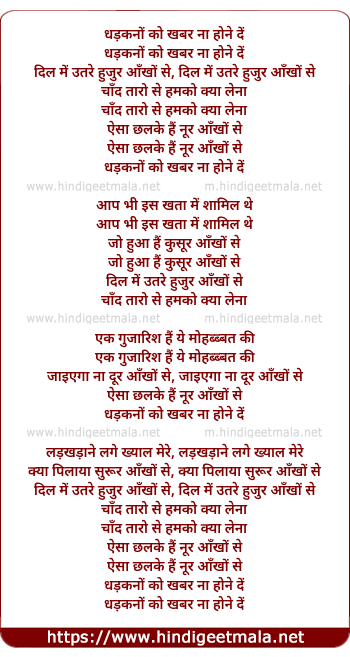 Poetic Translation - Lyrics of Dhadkano Ko Khabar Na Hone De - धड़कनों को खबर ना होने दें