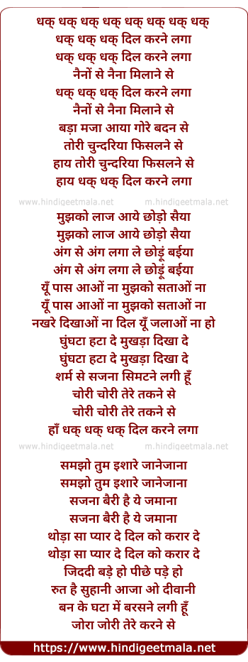Lyrics of Dhak Dhak Dhak Dil Karne Laga - धक धक धक दिल करने लगा