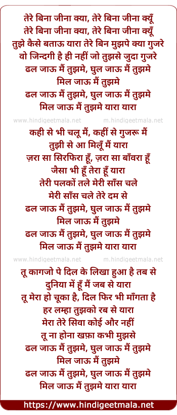 Lyrics of Dhal Jaau Main - ढल जाऊँ मैं