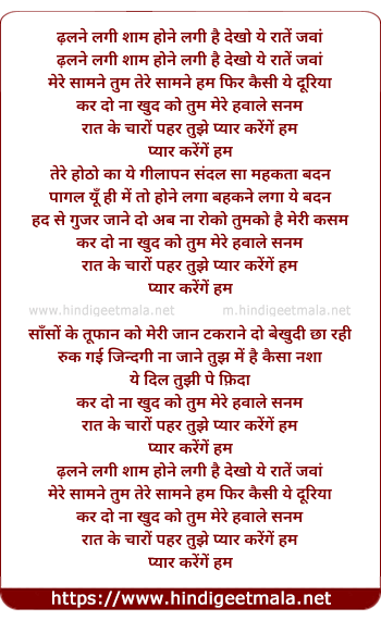 Lyrics of Dhalne Lagi Shaam - ढ़लने लगी शाम