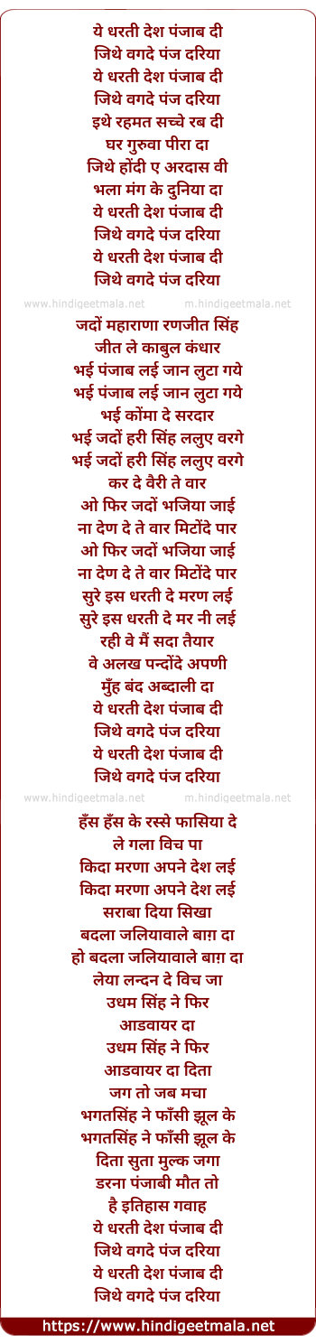Lyrics of Dhartee Dhartee - ये धरती देश पंजाब दी