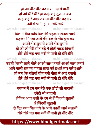 Lyrics of Dhire Dhire Chadh Gaya Nadi Mein Pani - धीरे धीरे चढ गया नदी में पानी