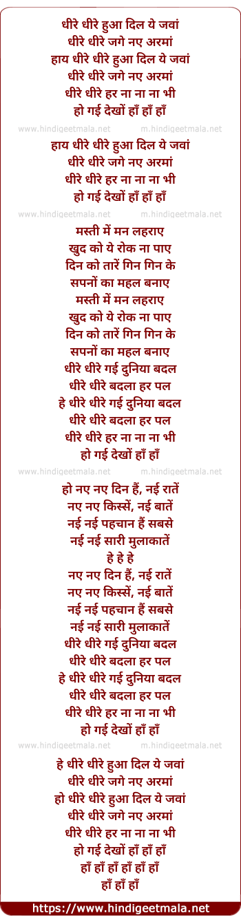 Lyrics of Dheere Dheere Hua Dil Ye Jawa (Male) - धीरे धीरे हुआ दिल ये जवां