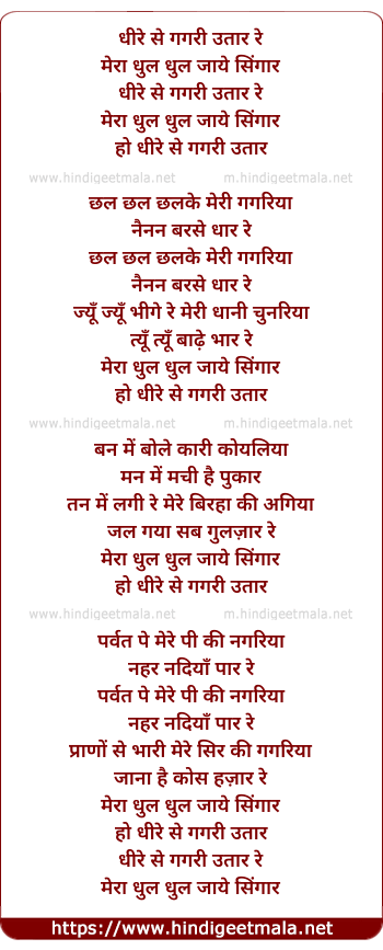 Lyrics of Dhire Se Gagri Utar Re - धीरे से गगरी उतार रे