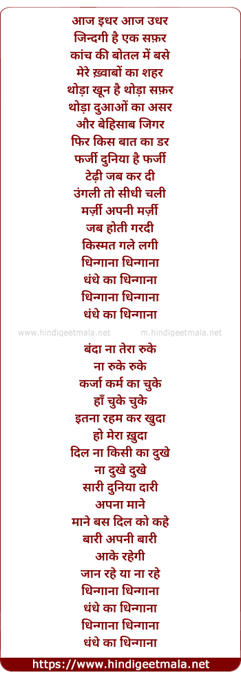 aaj idhar aaj udhar zindagi hai ek safar