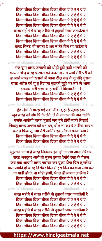 Lyrics of Dhinka Chika (Remix) - ढिंका चीका