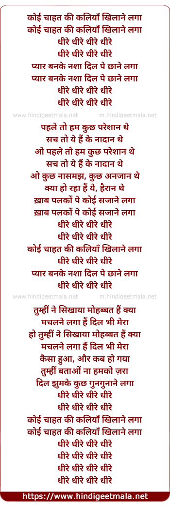 Lyrics of Dhire Dhire - धीरे धीरे