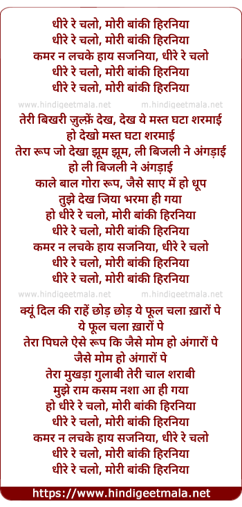 Lyrics of Dhire Re Chalo Moree Banki Hiraniya - धीरे रे चलो, मोरी बांकी हिरनिया
