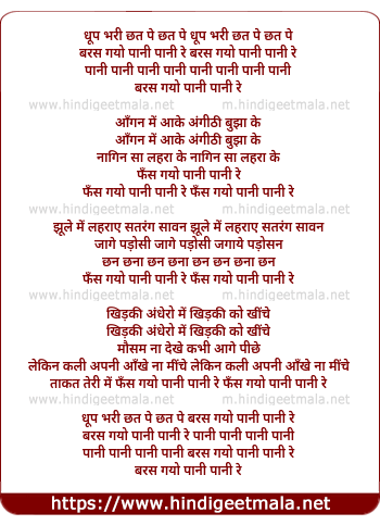 dhup bhari chhat pe chhat pe baras gayo pani pani re