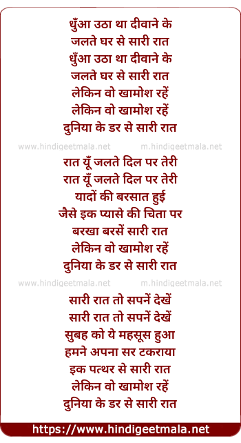 Lyrics of Dhua Utha Tha Diwane Ke Jalte Ghar Se - धुँआ उठा था दीवाने के
