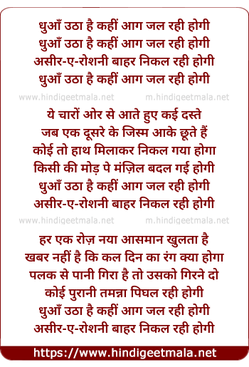 Lyrics of Dhuaan Uthaa Hai Kahin Aag Jal Rahi Hogi - धुआँ उठा है कहीं आग जल रही होगी