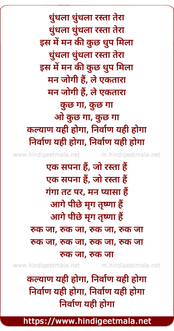 Lyrics of Dhundhla Dhundhla Rasta Tera - धुंधला धुंधला रस्ता तेरा