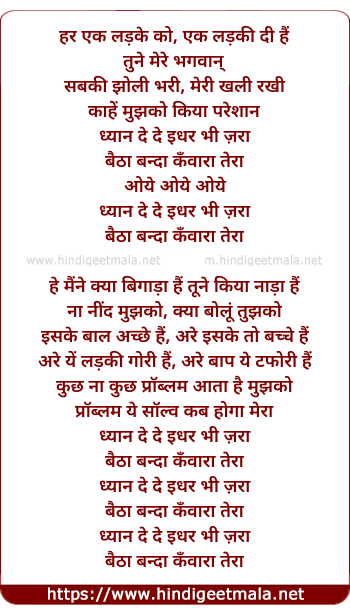Lyrics of Dhyaan De De Idhar Bhi Zara - हर एक लड़के को, एक लड़की दी हैं