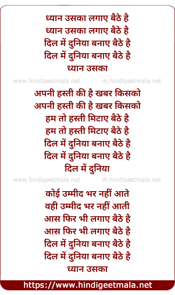 Lyrics of Dhyan Uska Lagaye Baithe Hai - ध्यान उसका लगाए बैठे है