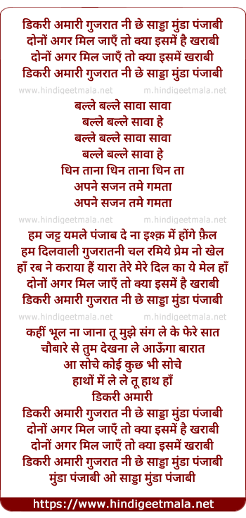 Lyrics of Dikari Amaari Gujaraat Ni, Donon Agar Mil Jaaen - डिकरी अमारी गुजरात नी, दोनों अगर मिल जायें