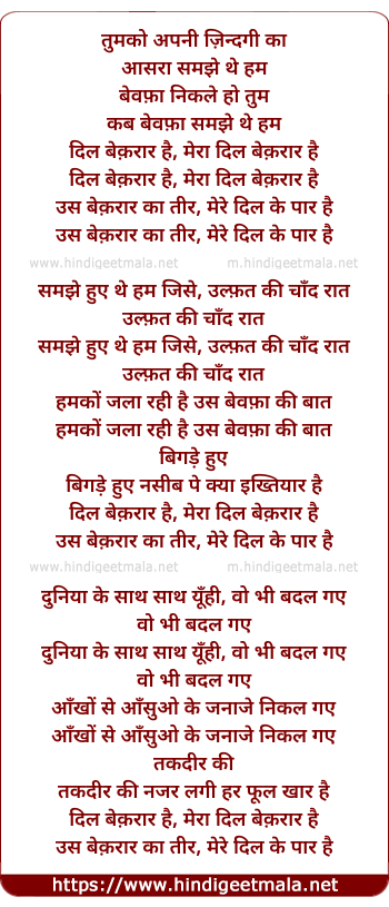 Lyrics of Dil Beqarar Hai Mera - दिल बेक़रार है मेरा