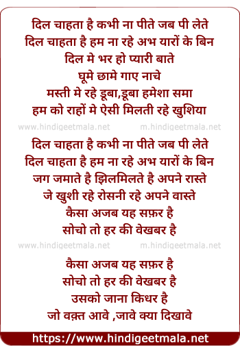 Lyrics of Dil Chahta Hai (Farhan Akhtar) - दिल चाहता है