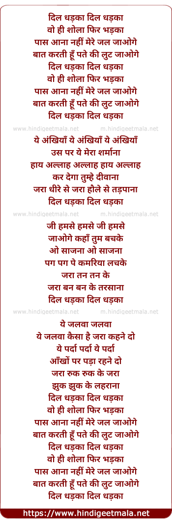 Lyrics of Dil Dhadka Wohi Shola Phir Badhka - दिल धड़का वो ही शोला फिर भड़का