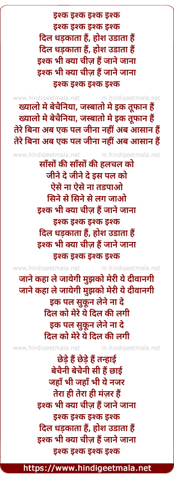 Lyrics of Dil Dhadkata Hai, Hosh Udata Hai (Female) - इश्क इश्क इश्क इश्क