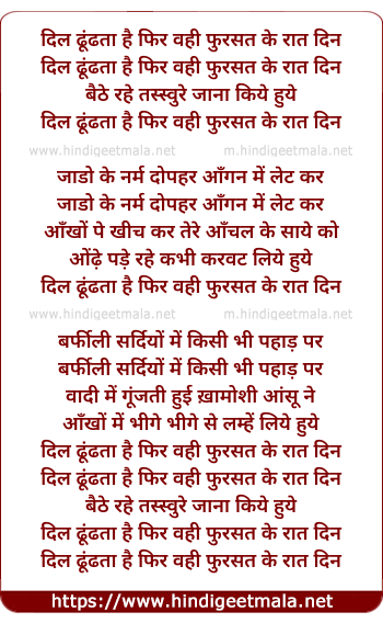 Lyrics of Dil Dhundta Hain - दिल ढूंढता है फिर वही फुरसत के रात दिन