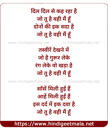 Lyrics of Dil Dil Se Keh Raha Hai - दिल दिल से कह रहा है