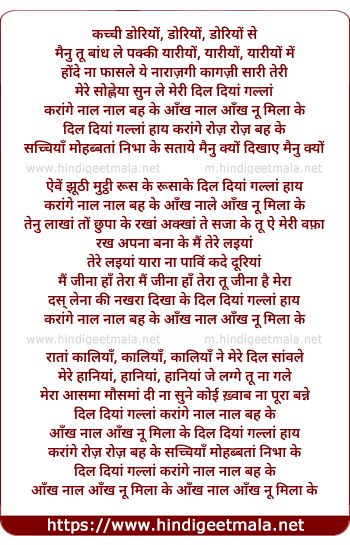 akh naal akh nu mila ke dil diyan gallan haaye