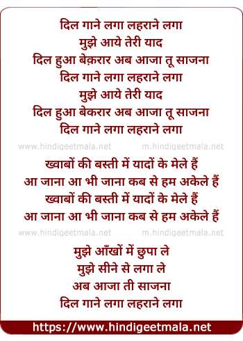 Lyrics of Dil Gane Laga (Female) - दिल गाने लगा