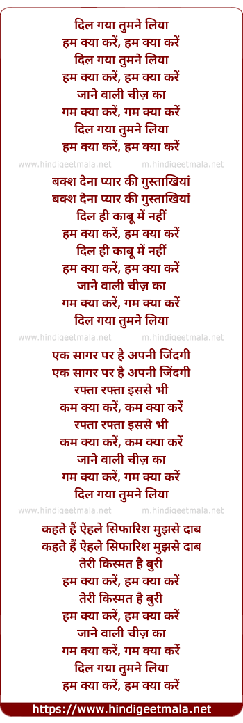 Lyrics of Dil Gaya Tumne Liya - दिल गया तुमने लिया