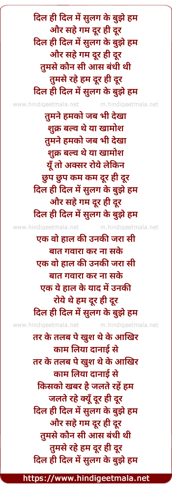 Lyrics of Dil Hi Dil Me Sulag Ke Bhuje Ham - दिल ही दिल में सुलग के बुझे हम