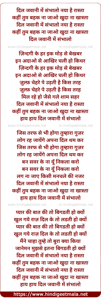 Lyrics of Dil Jawani Me Sambhalo - दिल जवानी में संभालो