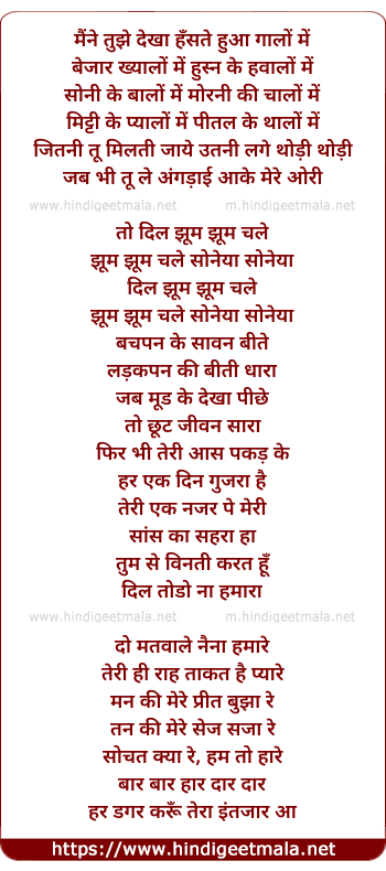 maine tujhe dekha hanste huve gaalon me